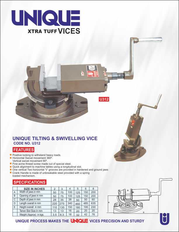 Unique Industries as a technology leader in Machine Tools Machine Vices, Tilting Tables, Drill Vices, Grip Vices, Bench Vices, Carpentery Vices, Magnetic Chucks, Roatary Tables.